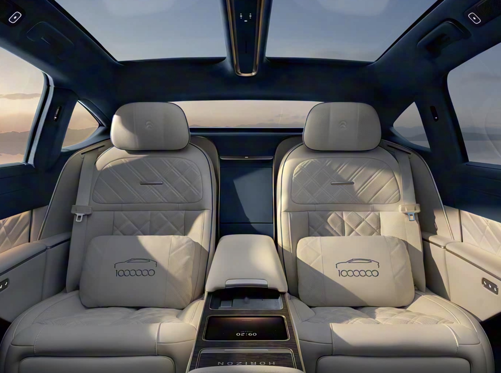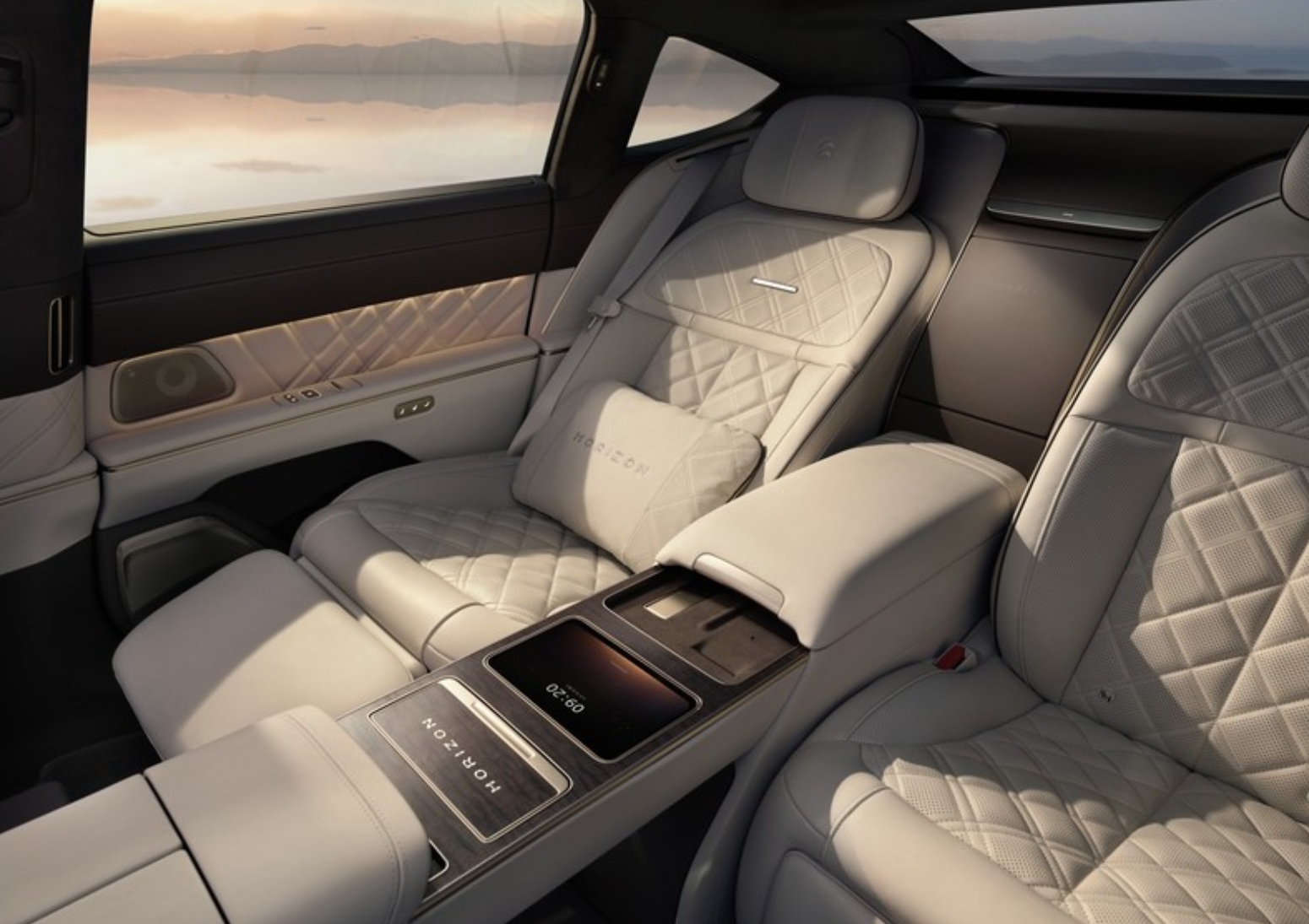 内饰以豪华舒适为核心,配置全面升级。15.6英寸3K AMOLED中控屏与1.4米天际氛围灯带营造科技座舱氛围,AR-HUD全焦段投影整合导航信息,配合ARNC主动降噪与5层隔音玻璃,静谧性大幅提升。采用“2+2”四座独立布局,配备前后座椅通风/加热/按摩功能,后排支持45°躺倒与全向调节,搭配刺绣工艺腰枕,带来极致乘坐体验。中控台内嵌10升车载冷暖冰箱,满足高端用户日常需求,车内还配有铑金臻藏徽章,彰显限量身份。
